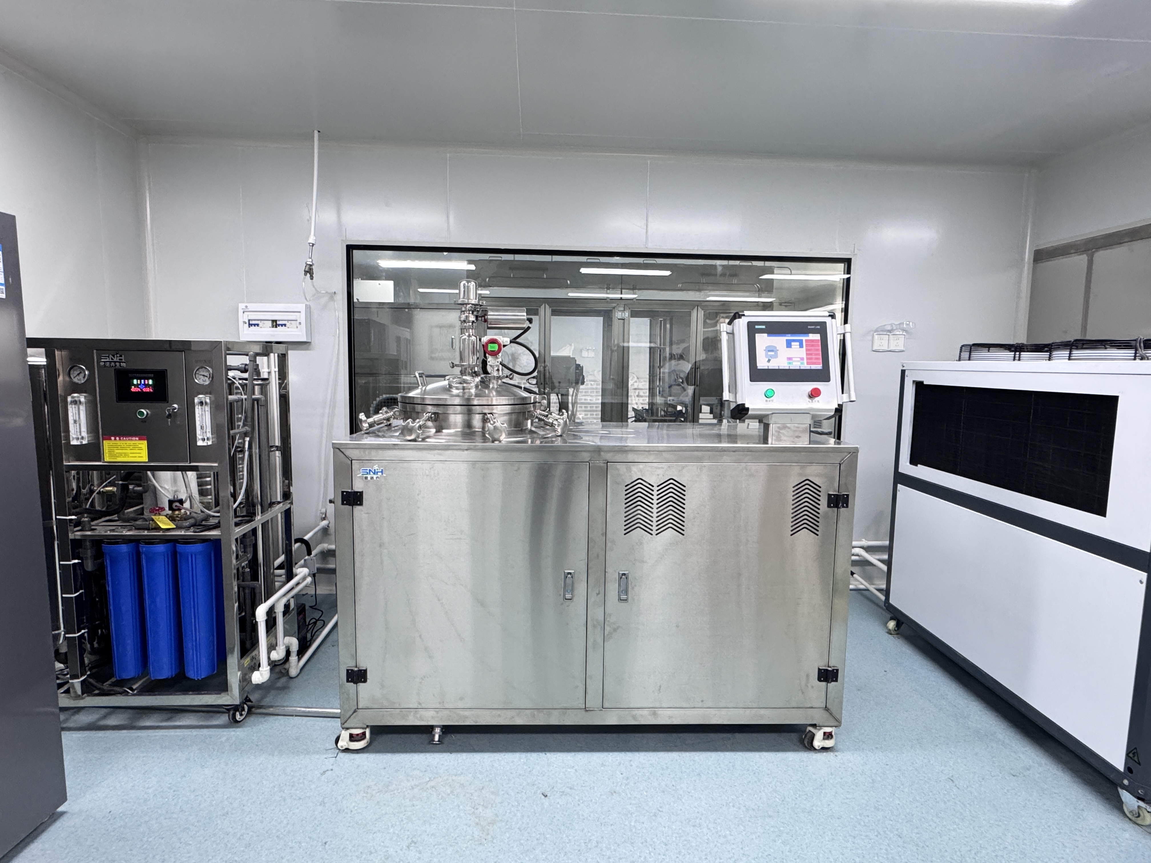 制备机由三层锅体组成,采用316医用级不锈钢,锅体配有观察窗,可随时观察培养基制作过程,锅体内部标有定量刻度线,满足不同产量生产需求,锅体采用双监测系统,温度压力自动调控,品牌磁力搅拌电机,西门子PLC,针式蒸汽供应阀,医用级别出料隔膜阀,耐高温空气过滤系统,思诺卉专注细节的把控,愿用最好的配件,让生产达到理想的效果。